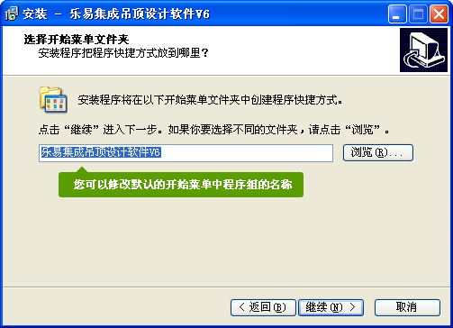 • 您可以在安裝過程中修改默認的安裝文件夾和開始菜單中的程序組名稱,如圖: