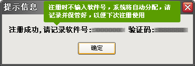 • 因為目前為測試階段,所以無需輸入軟件號和驗證碼,系統(tǒng)將自動分配一個,請記錄并保管好,以便下次再次注冊。