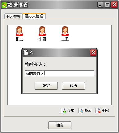 • 小區(qū)管理和經(jīng)辦人管理在菜單/設(shè)置中,如圖: